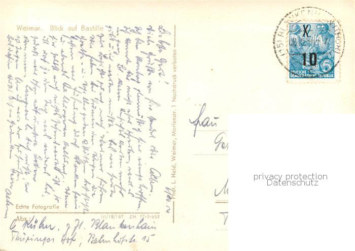73784146 alte Postkarte Weimar Thueringen Bastille postalisch gelaufen Erhaltung siehe scans [WerneD78] KatCode: 11110016055000