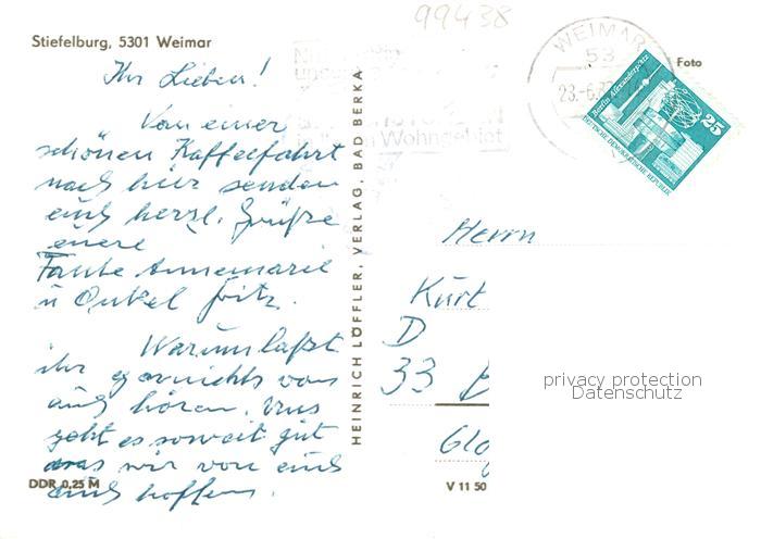 73865247 alte Postkarte Weimar Thueringen Berggaststaette Stiefelburg Restaurant postalisch gelaufen Erhaltung siehe scans [FriedD77] KatCode: 11110016055000
