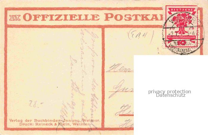 74128230 alte Postkarte WEIMAR Thueringen Deutsche Ntionalversammlung 1919 postalisch gelaufen Erhaltung siehe scans [WerneD78] KatCode: 11110016055000