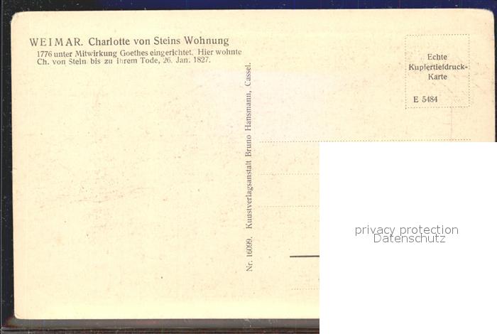 71861983 Weimar Thueringen Ehemaliges Wohnhaus der Charlotte von Stein Kupfertiefdruck postalisch nicht gelaufen Erhaltung siehe scans KatCode: 11110016055000