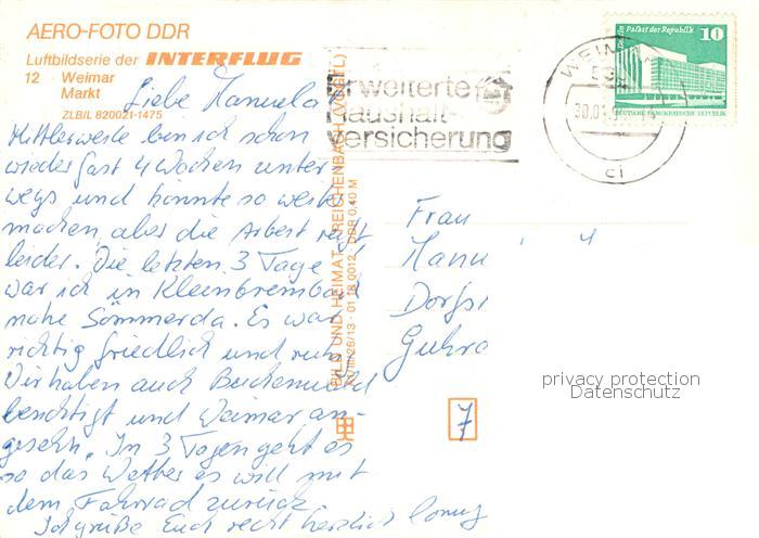 73756925 alte Postkarte Weimar Thueringen Fliegeraufnahme Markt postalisch gelaufen Erhaltung siehe scans [LiesaD40] KatCode: 11110016055000
