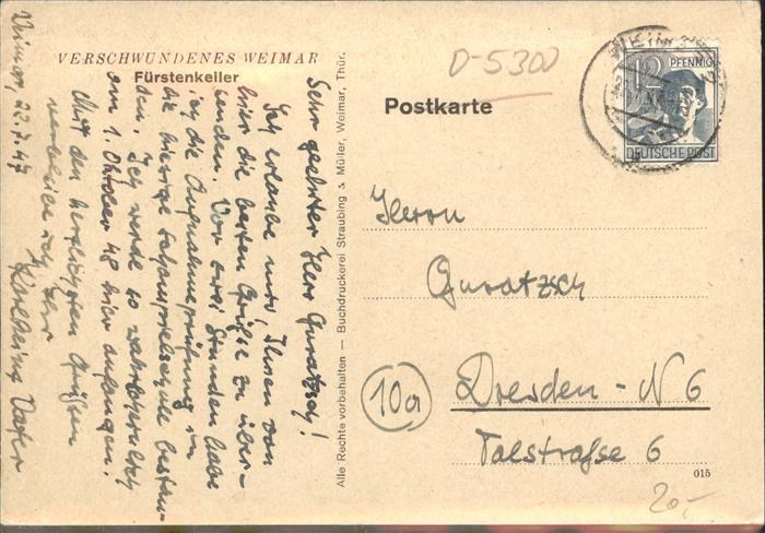 41421312 alte Postkarte Weimar Thueringen Fuerstenkeller Kuenstlerkarte Kurt Halboth postalisch gelaufen Erhaltung siehe scans KatCode: 11110016055000