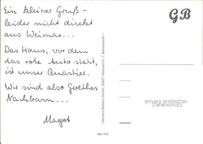 72337146 Weimar Thueringen Goethe Schiller Denkmal Goethehaus Deutsches Nationaltheater postalisch nicht gelaufen Erhaltung siehe scans KatCode: 11110016055000