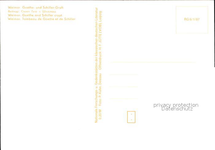 72545299 Weimar Thueringen Goethe und Schiller Gruft postalisch nicht gelaufen Erhaltung siehe scans [KathaD79 kv011box] KatCode: 11110016055000