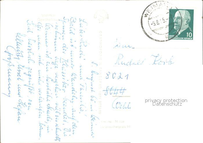 72366676 alte Postkarte Weimar Thueringen Goethehaus postalisch gelaufen Erhaltung siehe scans KatCode: 11110016055000