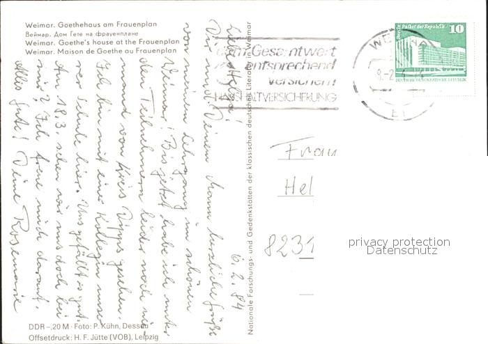 72368875 alte Postkarte Weimar Thueringen Goethehaus am Frauenplan postalisch gelaufen Erhaltung siehe scans KatCode: 11110016055000