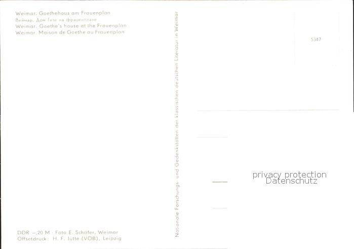 72368873 Weimar Thueringen Goethehaus am Frauenplan postalisch nicht gelaufen Erhaltung siehe scans KatCode: 11110016055000