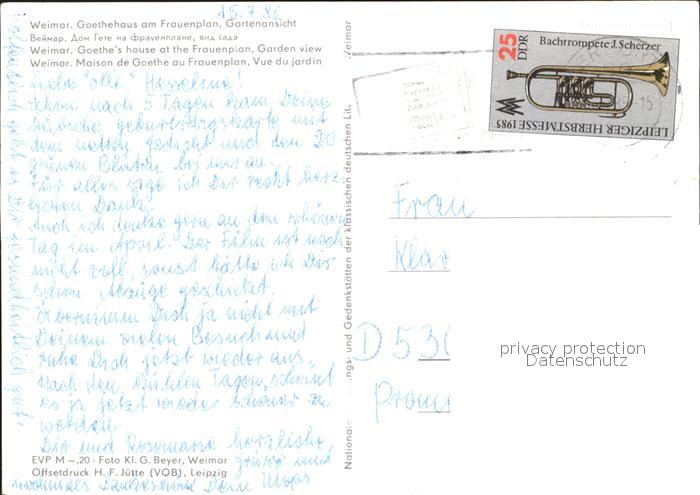 72248017 alte Postkarte Weimar Thueringen Goethehaus am Frauenplan Garten postalisch gelaufen Erhaltung siehe scans KatCode: 11110016055000