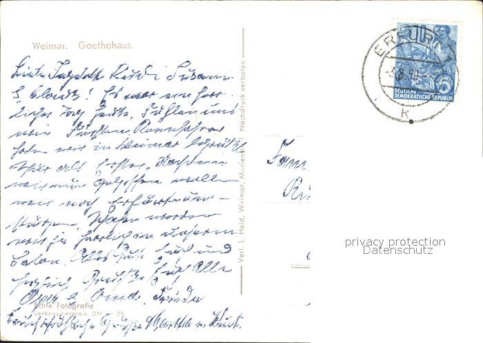 72475765 alte Postkarte Weimar Thueringen Goethehaus Brunnen postalisch gelaufen Erhaltung siehe scans KatCode: 11110016055000
