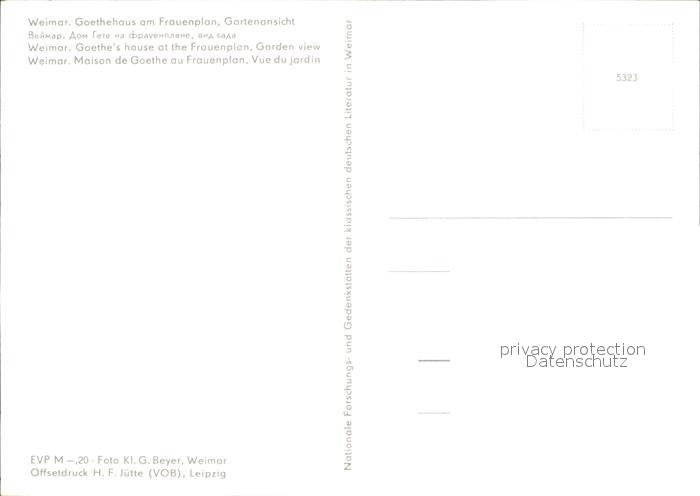 72545287 Weimar Thueringen Goethehaus Frauenplan postalisch nicht gelaufen Erhaltung siehe scans [KathaD79 kv011box] KatCode: 11110016055000