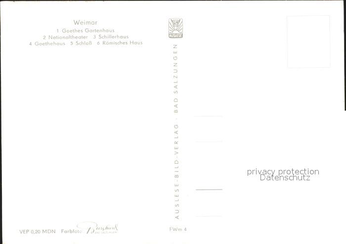 72322948 Weimar Thueringen Goethes Gartenhaus Nationaltheater Schillerhaus Schloss Roemisches Haus postalisch nicht gelaufen Erhaltung siehe scans KatCode: 11110016055000