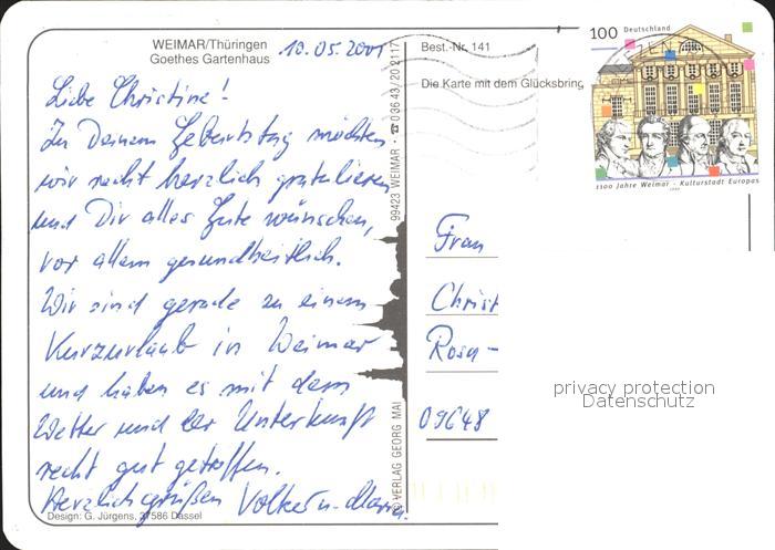72337128 alte Postkarte Weimar Thueringen Goethes Gartenhaus Park postalisch gelaufen Erhaltung siehe scans KatCode: 11110016055000