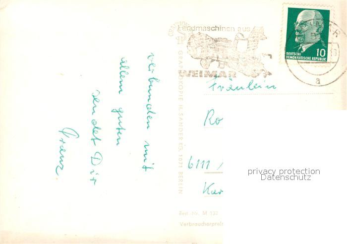 73156573 alte Postkarte Weimar Thueringen Goethes Gartenhaus Rathaus Deutsches Nationaltheater Wittumspalais postalisch gelaufen Erhaltung siehe scans [FriedD77] KatCode: 11110016055000