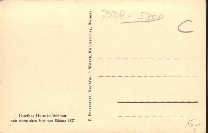 41421128 Weimar Thueringen Goethes Haus Kuenstlerkarte Stich von Schuetze 1828 postalisch nicht gelaufen Erhaltung siehe scans KatCode: 11110016055000