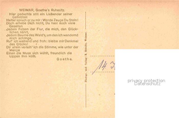72829047 Weimar Thueringen Goethes Ruhesitz postalisch nicht gelaufen Erhaltung siehe scans [LiesaD40] KatCode: 11110016055000
