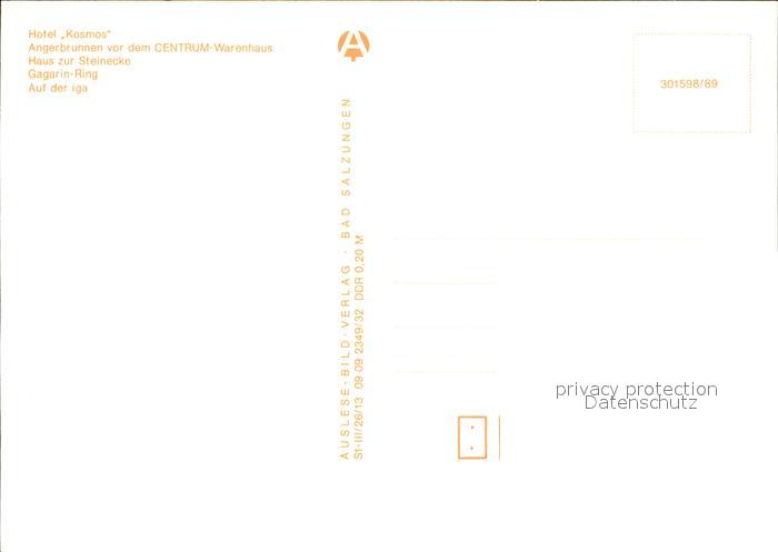 72577480 Weimar Thueringen Hotel Kosmos Angerbrunnen Centrum Warenhaus Haus zur Steinecke Gagarin Ring iga Wappen postalisch nicht gelaufen Erhaltung siehe scans [FriedD77] KatCode: 11110016055000