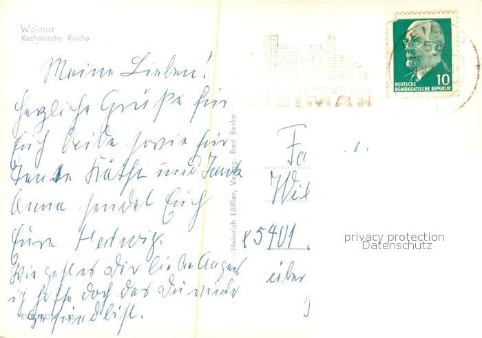 73140244 alte Postkarte Weimar Thueringen Katholische Kirche postalisch gelaufen Erhaltung siehe scans [FriedD77] KatCode: 11110016055000
