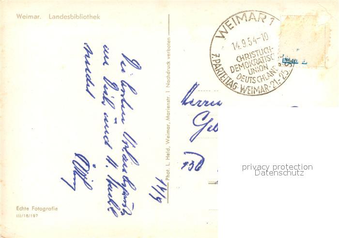 72986374 alte Postkarte Weimar Thueringen Landesbibliothek postalisch gelaufen Erhaltung siehe scans [FriedD77] KatCode: 11110016055000