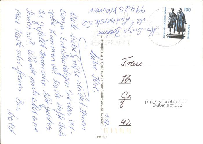 72337152 alte Postkarte Weimar Thueringen Lucas Cranach Haus Schillerhaus Stadtkirche Rathaus Schloss Ettersburg Goethes Gartenhaus postalisch gelaufen Erhaltung siehe scans KatCode: 11110016055000