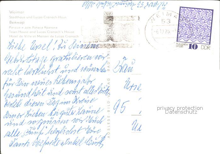 72382861 alte Postkarte Weimar Thueringen Lucas Cranach Haus postalisch gelaufen Erhaltung siehe scans KatCode: 11110016055000