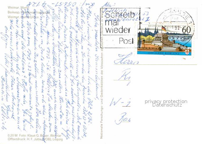 72854774 alte Postkarte Weimar Thueringen Markt postalisch gelaufen Erhaltung siehe scans [AndreD76] KatCode: 11110016055000