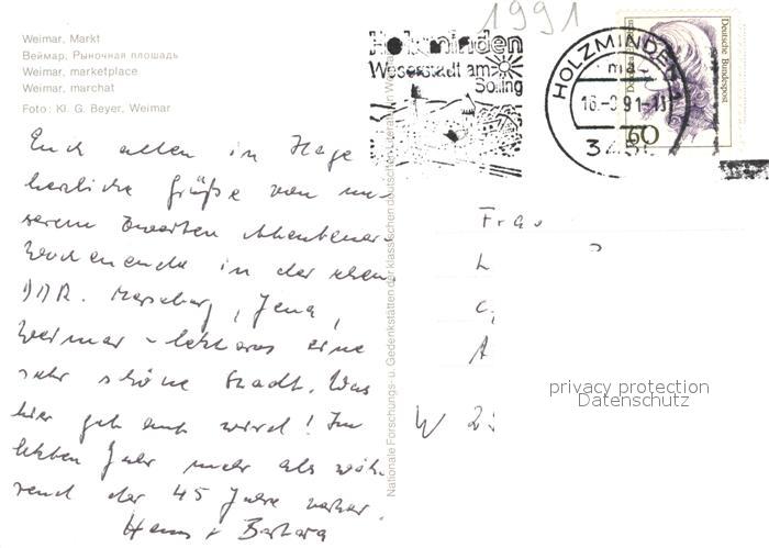 73073893 alte Postkarte Weimar Thueringen Markt Brunnen postalisch gelaufen Erhaltung siehe scans [WerneD78] KatCode: 11110016055000