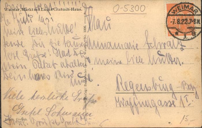 41421088 Weimar Thueringen Markt mit Lucas Cranach-Haus Marktstände KatCode 11110016055000