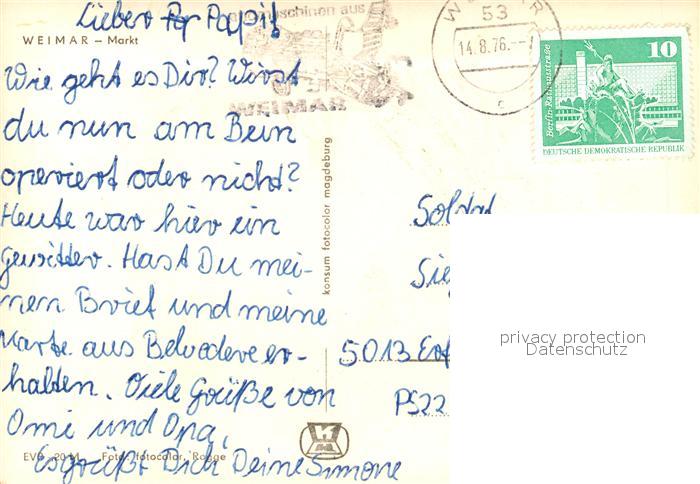 73128638 alte Postkarte Weimar Thueringen Markt Reisebuero Giebelhaus postalisch gelaufen Erhaltung siehe scans [FriedD77] KatCode: 11110016055000