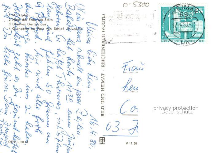 73046147 alte Postkarte Weimar Thueringen Marktplatz Haus der Frau von Stein Goethes Gartenhaus Schloss postalisch gelaufen Erhaltung siehe scans [KathaD81] KatCode: 11110016055000
