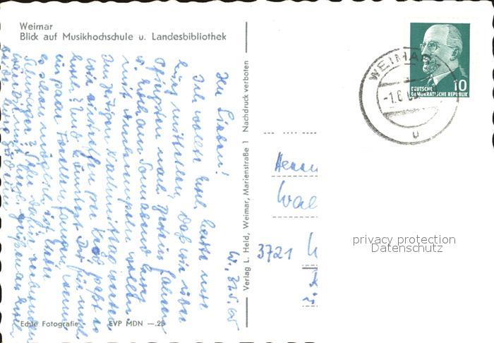 72433290 alte Postkarte Weimar Thueringen Musikhochschule Landesbibliothek postalisch gelaufen Erhaltung siehe scans KatCode: 11110016055000