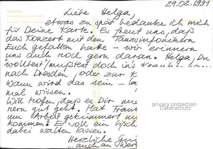 72352857 alte Postkarte Weimar Thueringen Neptunbrunnen postalisch gelaufen Erhaltung siehe scans KatCode: 11110016055000