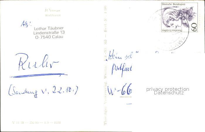 72142504 alte Postkarte Weimar Thueringen Rathaus postalisch gelaufen Erhaltung siehe scans KatCode: 11110016055000