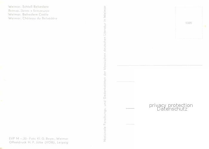 72616346 Weimar Thueringen Schloss Belvedere postalisch nicht gelaufen Erhaltung siehe scans [FriedD77] KatCode: 11110016055000