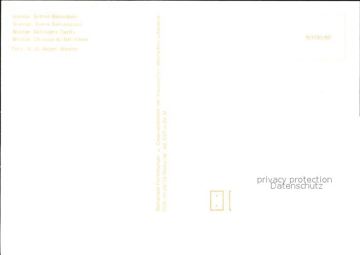 72545300 Weimar Thueringen Schloss Belvedere postalisch nicht gelaufen Erhaltung siehe scans [KathaD79 kv011box] KatCode: 11110016055000