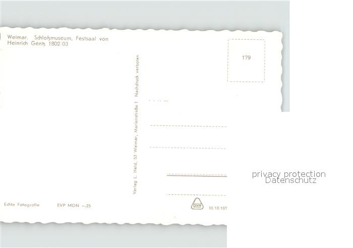 71900406 Weimar Thueringen Schlossmuseum Festsaal postalisch nicht gelaufen Erhaltung siehe scans KatCode: 11110016055000