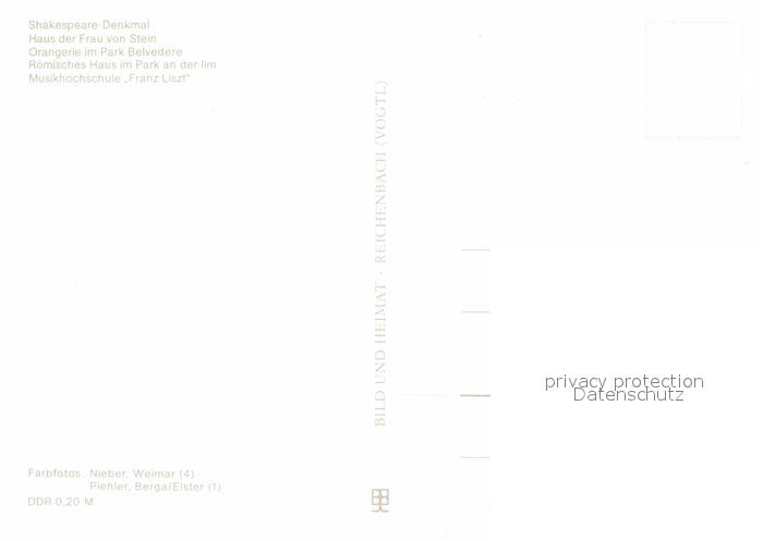 72901769 Weimar Thueringen Shakespeare Denkmal Haus der Frau von Stein Orangerie postalisch nicht gelaufen Erhaltung siehe scans [AndreD76] KatCode: 11110016055000