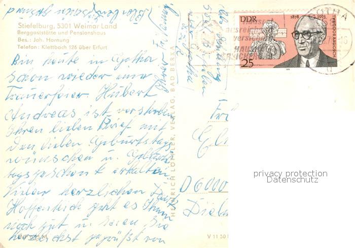 72940705 alte Postkarte Weimar Thueringen Stiefelburg Berggaststaette und Pensionshaus postalisch gelaufen Erhaltung siehe scans [FriedD77] KatCode: 11110016055000