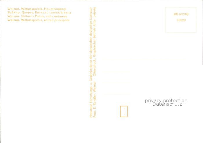 72383195 Weimar Thueringen Wittumspalais postalisch nicht gelaufen Erhaltung siehe scans KatCode: 11110016055000