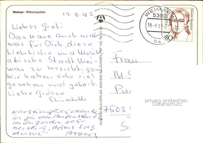 72555583 alte Postkarte Weimar Thueringen Wittumspalais postalisch gelaufen Erhaltung siehe scans [AndreD76] KatCode: 11110016055000