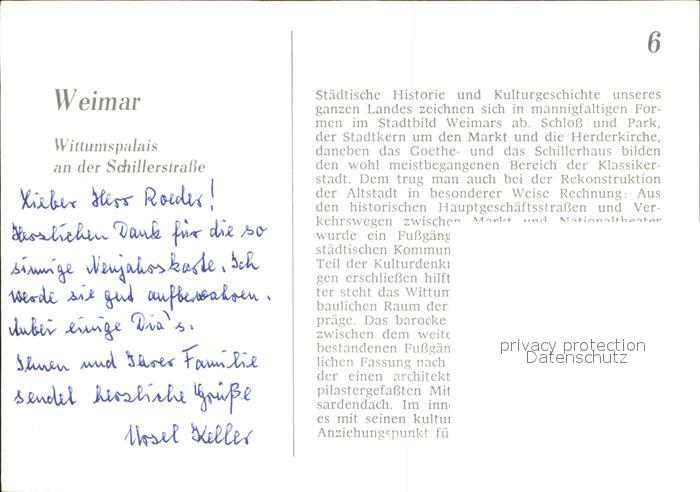 72405982 Weimar Thueringen Wittumspalais Schillerstrasse postalisch nicht gelaufen Werbekarte (keine Postkarte) Erhaltung siehe scans KatCode: 11110016055000
