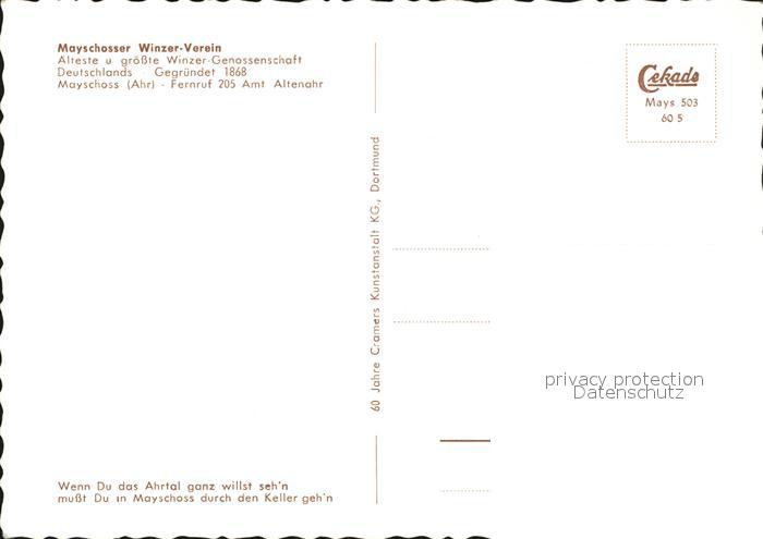 Wein Mayschosser Winzer-Verein Jubilaeumsfass postalisch nicht gelaufen Erhaltung siehe scans