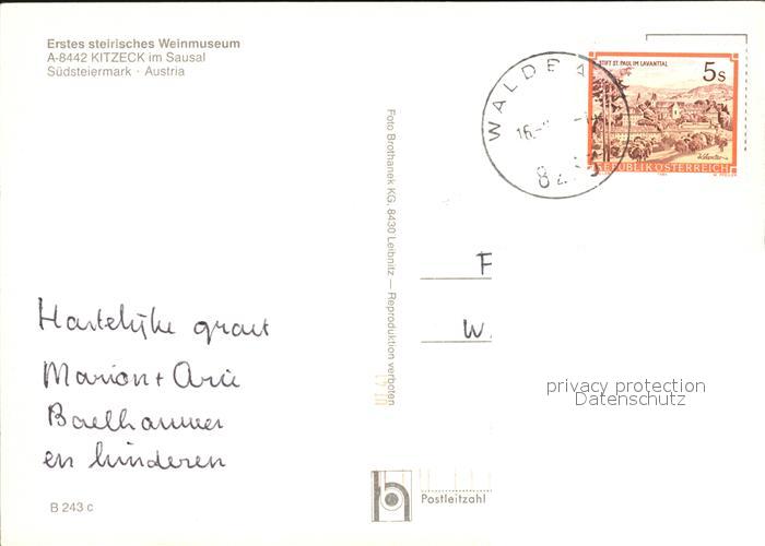 alte Postkarte Wein Steirisches Weinmuseum Kitzeck im Saustal postalisch gelaufen Erhaltung siehe scans