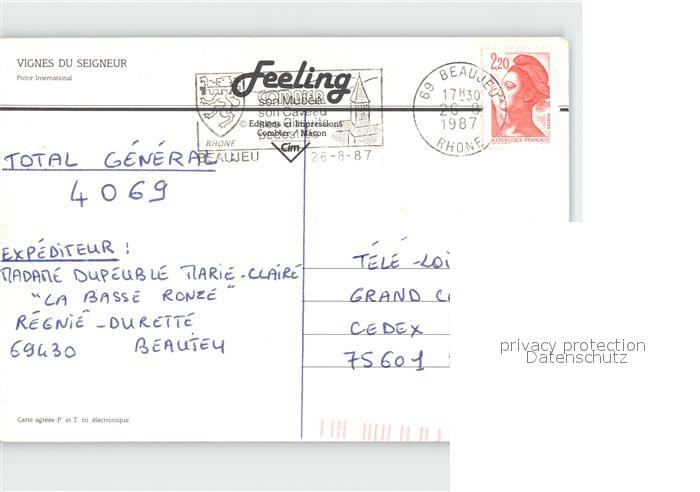 alte Postkarte Wein Vignes du Seigneur postalisch gelaufen Erhaltung siehe scans