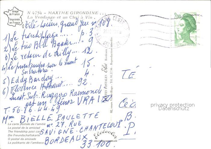 alte Postkarte Wein Weinlese Vendage Chai a vin Maxime Girondine Bordeaux postalisch gelaufen Erhaltung siehe scans