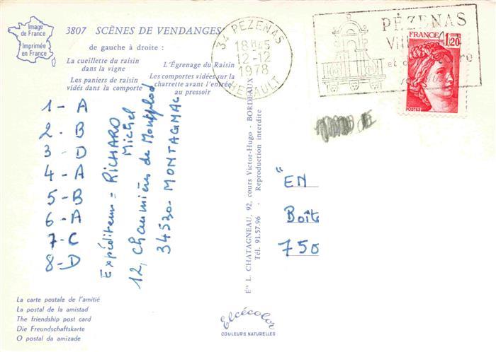 74028230 alte Postkarte Wein Wine Vin Vino– Scenes de Vendanges postalisch gelaufen Erhaltung siehe scans [SanaeD93] KatCode: 22280000000300