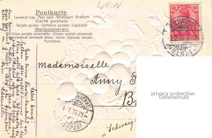 74105981 alte Postkarte Wein Wine Vin Vino– Trauben Blau postalisch gelaufen Erhaltung siehe scans [IrynaD87] KatCode: 22280000000300