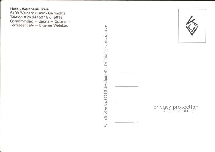 72547651 Weinaehr Hotel Weinhaus Treis Panorama Lahnpartie postalisch nicht gelaufen Erhaltung siehe scans [WerneD78 kv017box] KatCode: 11110007141135
