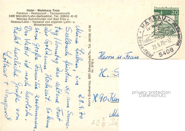 73541348 alte Postkarte Weinaehr Hotel Weinhaus Treis postalisch gelaufen Erhaltung siehe scans [KathaD81] KatCode: 11110007141135