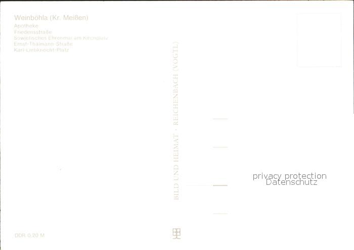 72137863 Weinboehla Apotheke Friedensstr Sowj Ehrenmal Ernst Thaelmann Str Karl Liebknecht Platz postalisch nicht gelaufen Erhaltung siehe scans KatCode: 11110014280440
