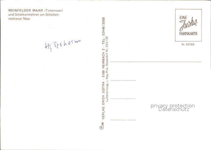 72273133 Weinfelder Maar Fliegeraufnahme Schalkenmehren Schalkenmehrener Maar postalisch nicht gelaufen Erhaltung siehe scans KatCode: 11110007233501